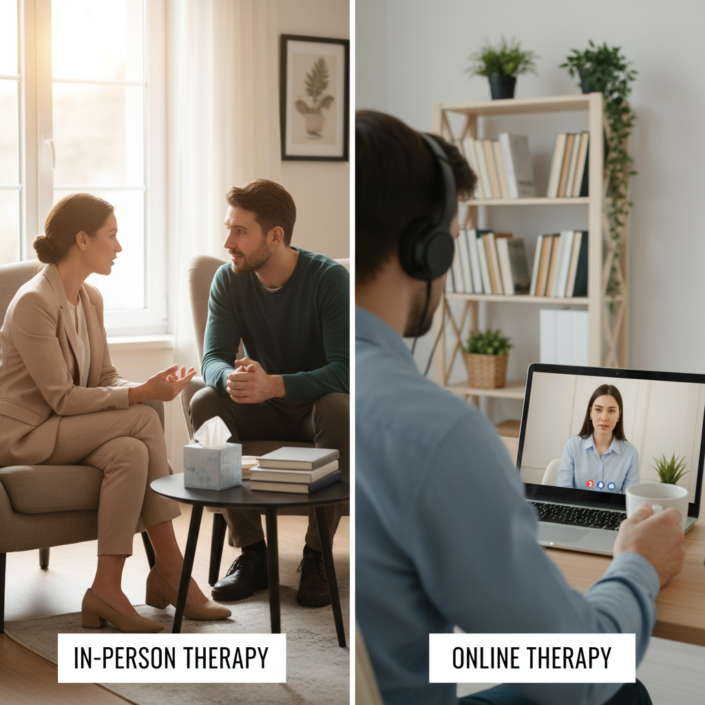 Różnice w skuteczności zależą od rodzaju terapii, wieku pacjenta i powagi problemu. Terapia online sprawdza się najlepiej w łagodnych zaburzeniach, pracy nad nawykami czy rozwijaniu samoświadomości. W leczeniu poważnych stanów (np. psychozy, ostre kryzysy suicydalne) rekomendowana jest terapia tradycyjna.